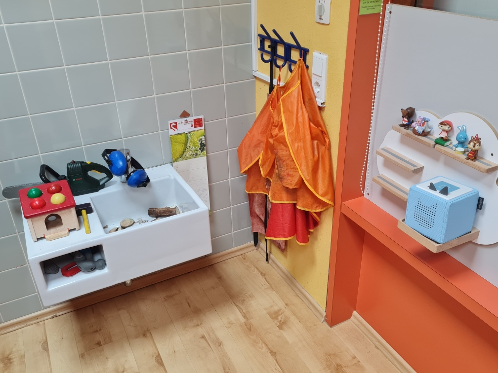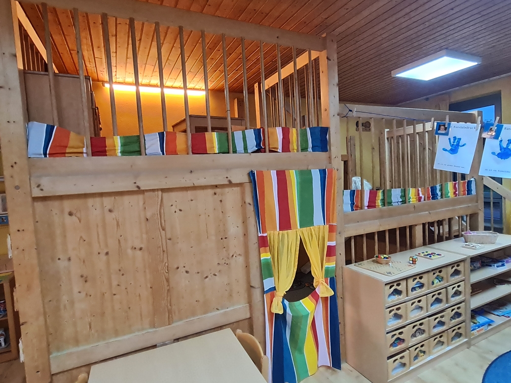 Diese zusätzlichen Spielbereiche werden oft und gerne genutzt und schaffen so mehr Platz und Ruhe im Gruppenzimmer für Aktionen und Tätigkeiten der anderen Kinder. Außerdem wird die Lautstärke im Gruppenraum reduziert, was sehr entlastend wirkt.